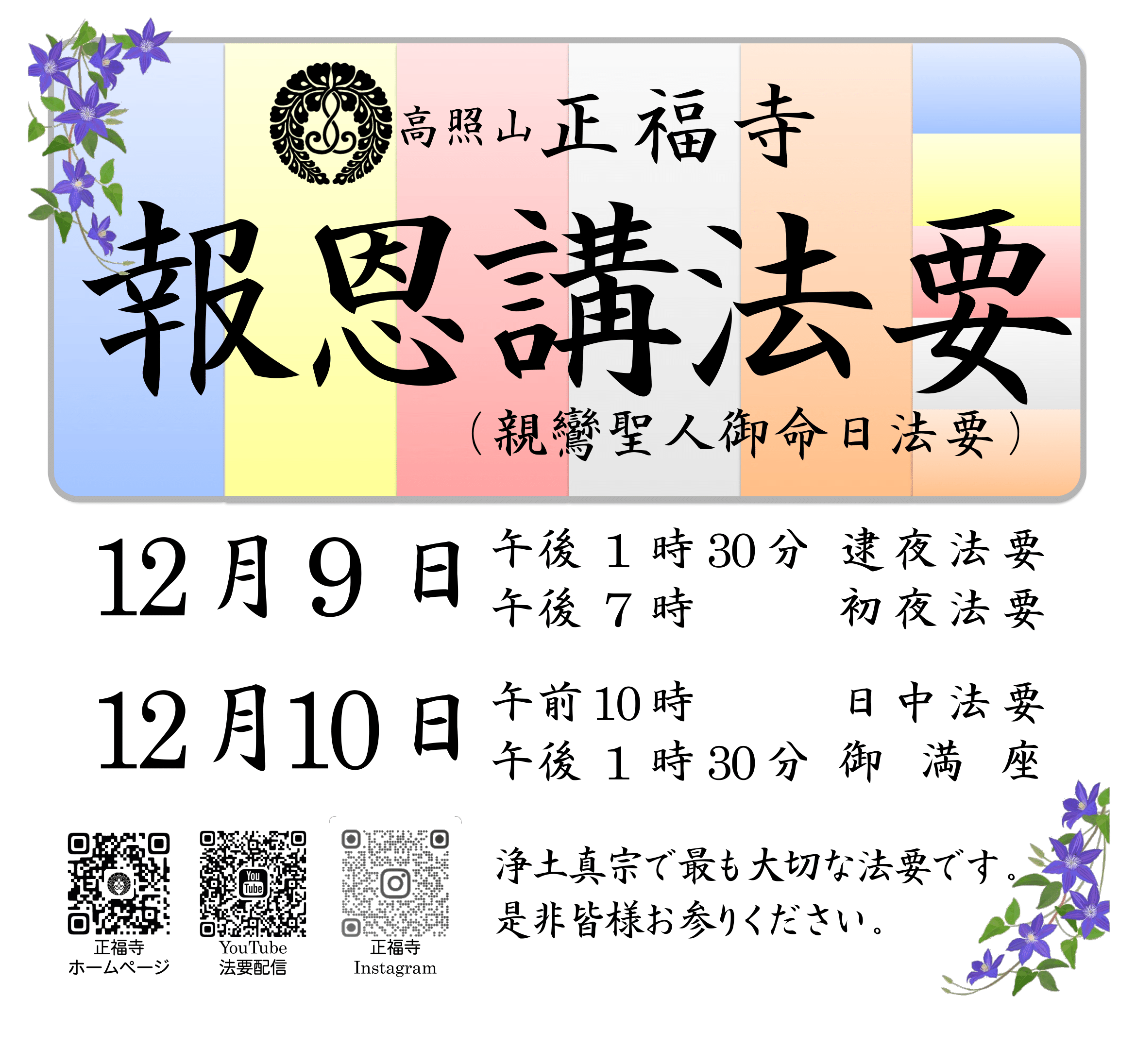 浄土真宗の法要において最も大切な法要ですので、皆様万障お繰り合わせのうえ御参詣ください。